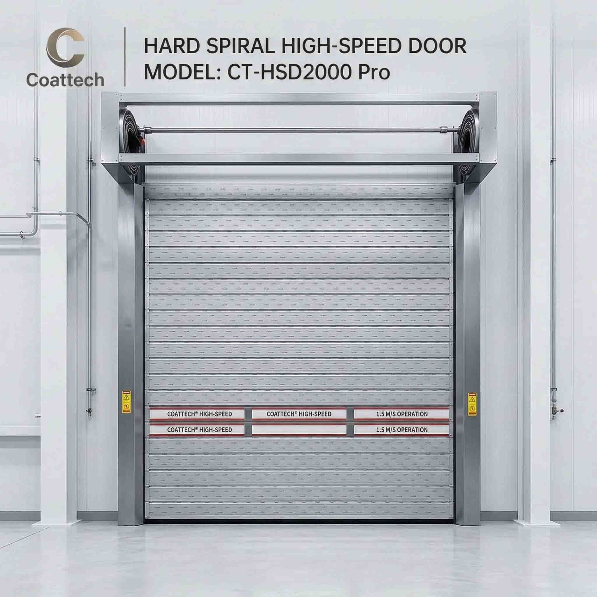 コアテック社の高速回転ドアはセキュリティ,隔熱,迅速な操作(1.5-2.5m/s伝統的なローラー・シャッターとは異なり,我々のタービン駆動技術は,ゼロコンタクトのスパイラルリングを保証し,100万回噴霧室やクリーンルームや 交通渋滞の物流に最適です