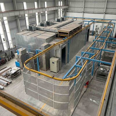 産業用ヘアヘッド材料処理システム 金属部品をクリーンな粉末塗装と製造施設を通す